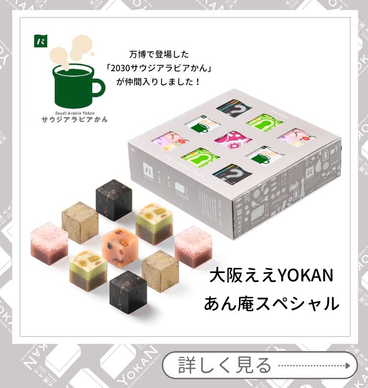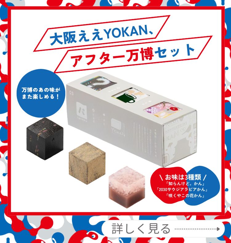 「あたらしい大阪みやげ計画」から生まれた、次世代のようかんを創出する新ブランド「大阪ええYOKAN」。「YOKAN」は「予感」とも読むことができ、「渡す相手を想うお土産としてのええ予感」、「口に入れるまでのお菓子としてのええ予感」、そして「2025年の大阪に対する未来へのええ予感」のすべてを満たすようかんを目指します。